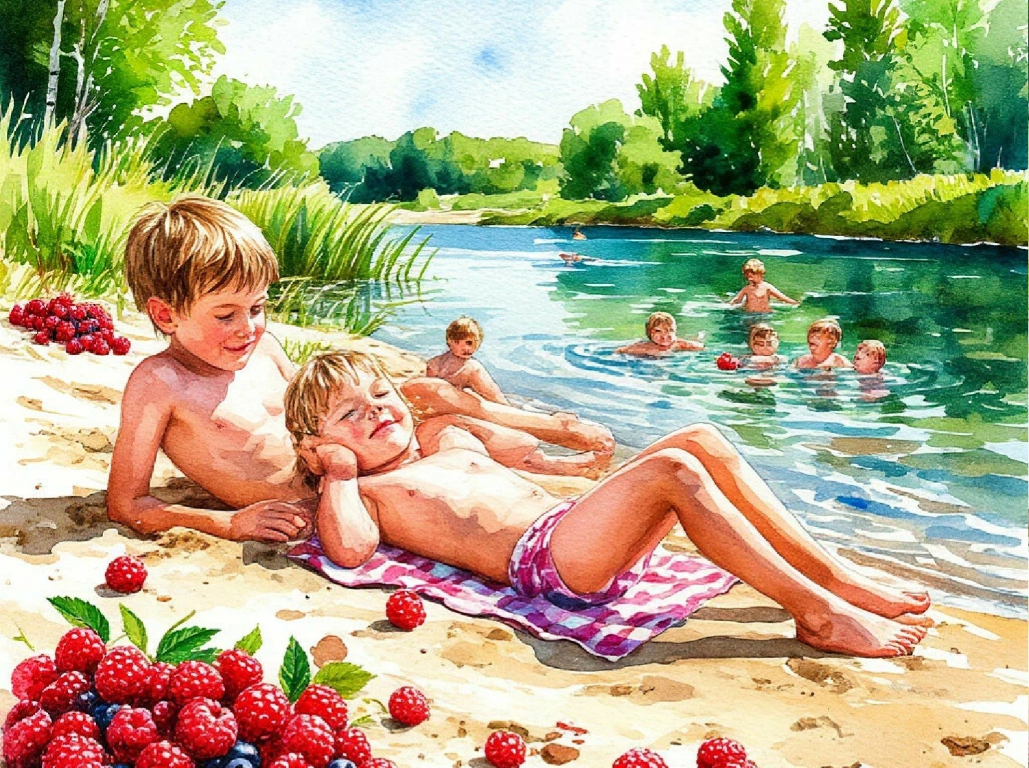 Всё лето ягоды, купанье,