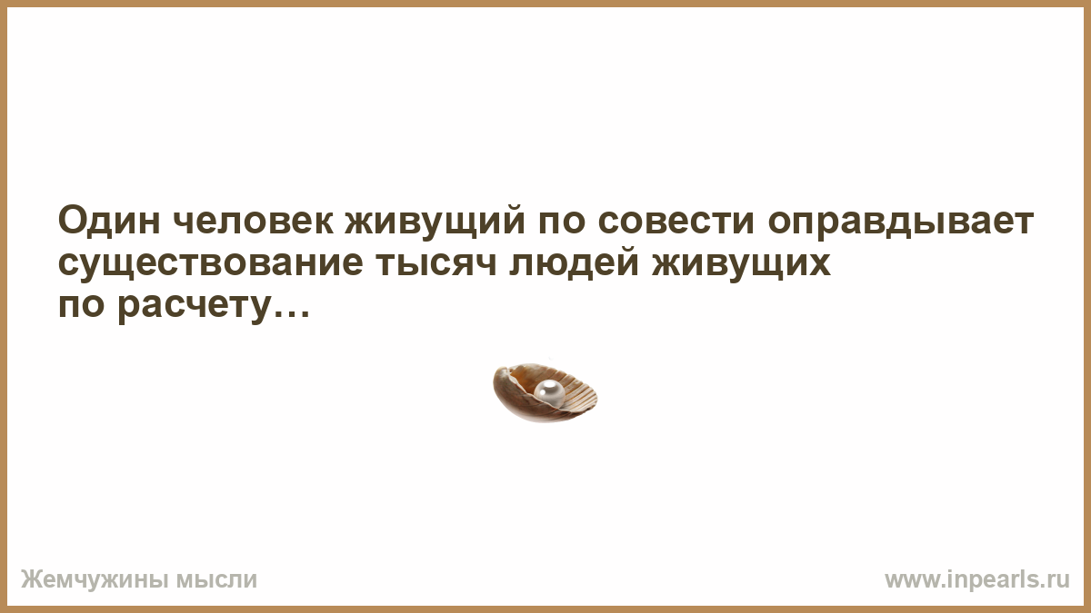 Один человек живущий по совести оправдывает существование тысяч людей живущих по расчету…