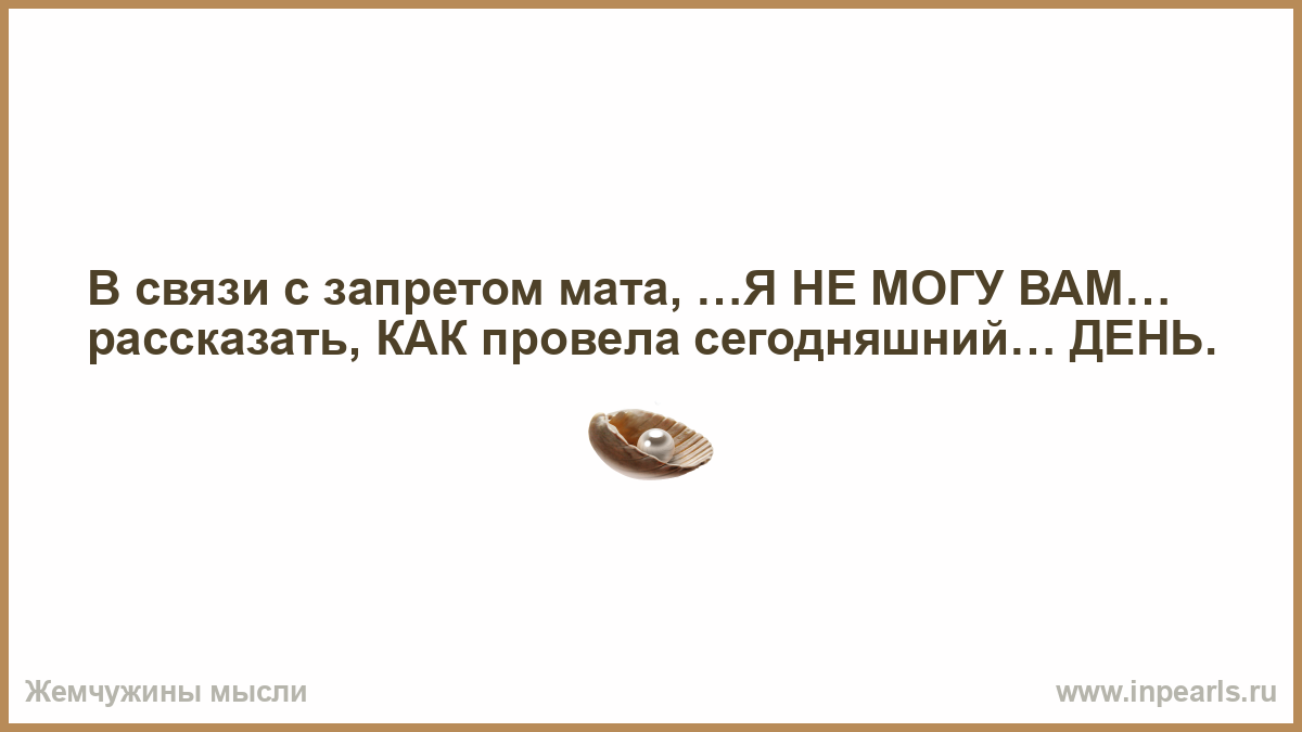 В cвязи с зaпретом мaта, …Я НЕ МОГУ ВАМ… рaссказать, КАК провелa сегодняшний… ДЕНЬ.