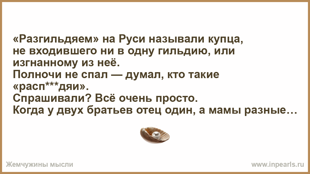 «Разгильдяем» на Руси называли купца, не входившего ни в одну гильдию, или изгнанному из неё.