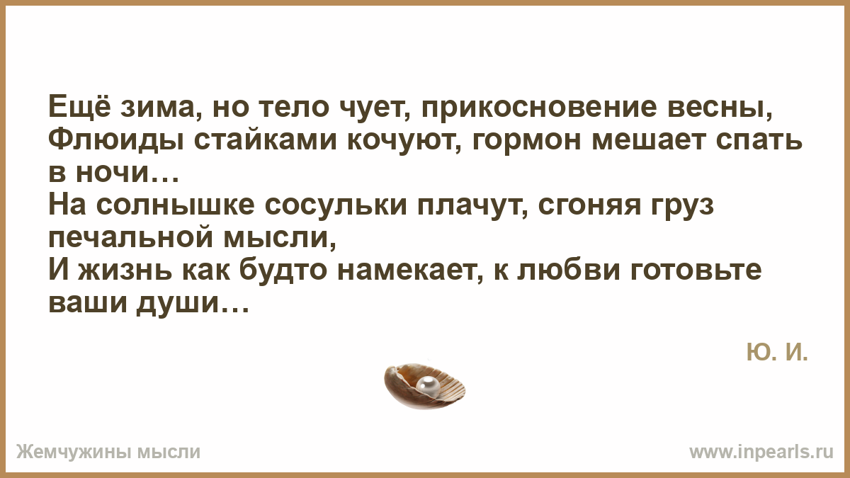 Ещё зима, но тело чует, прикосновение весны (стихи Ю. И)