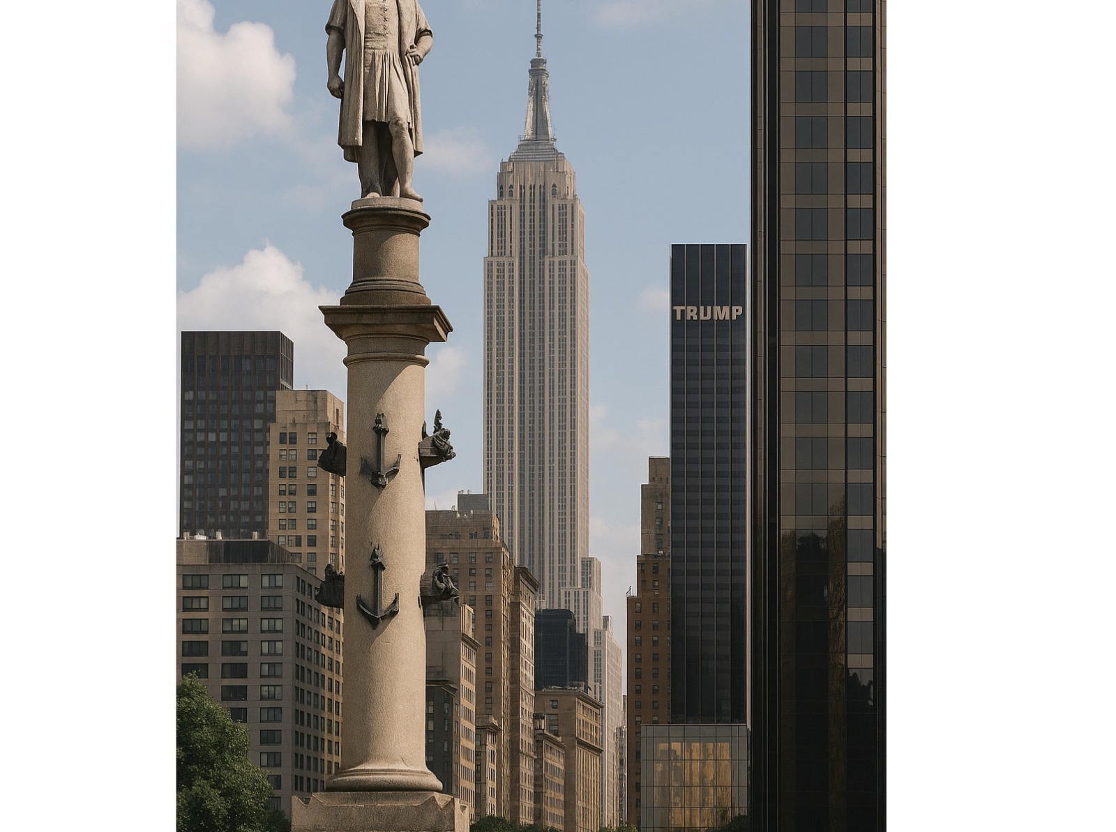 На Колумбус-Сёркл стоит фигура, которую две недели охраняла полиция. Не бронзу — память. Нью-Йорк умеет спорить о своих символах, но ещё лучше умеет их защищать. Колумб здесь не герой и не злодей — он точка входа. Как гавань. Как дверь. Как первый шаг, который потом превращается в город.