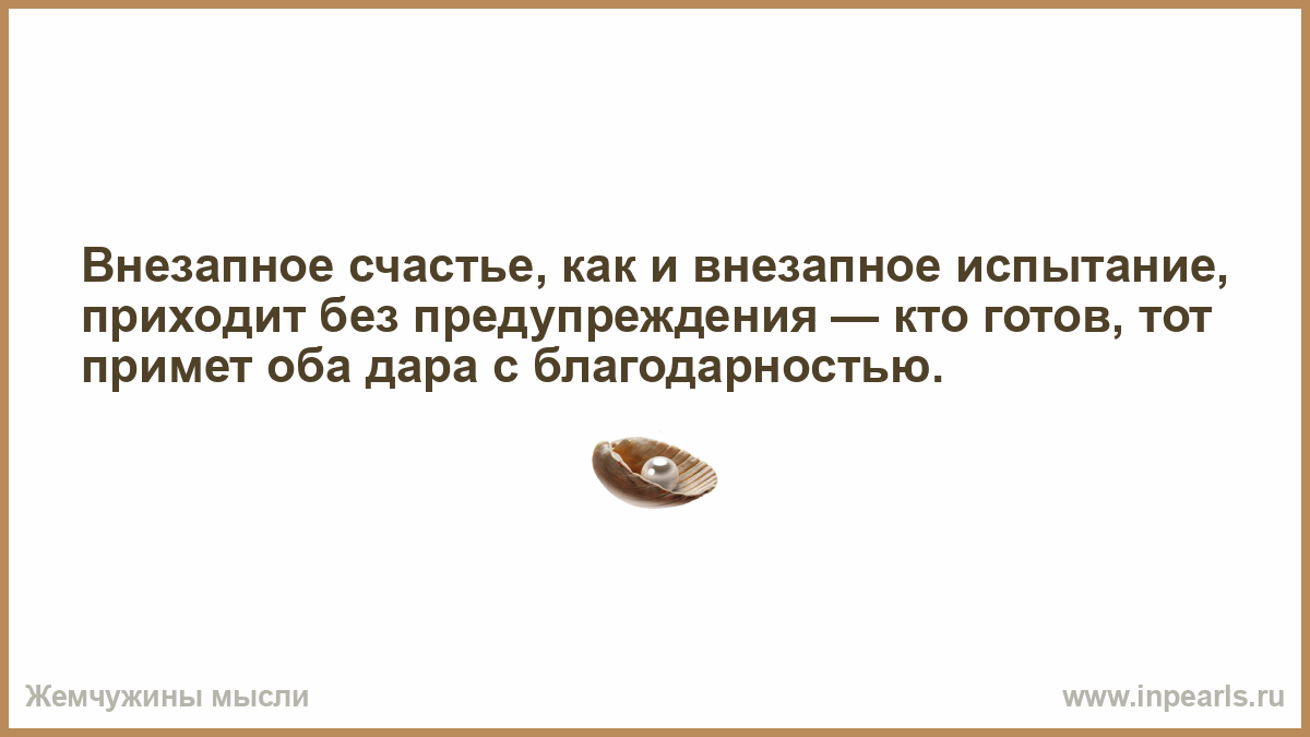 Внезапное счастье, как и внезапное испытание, приходит без предупреждения — кто готов, тот примет оба дара с благодарностью.