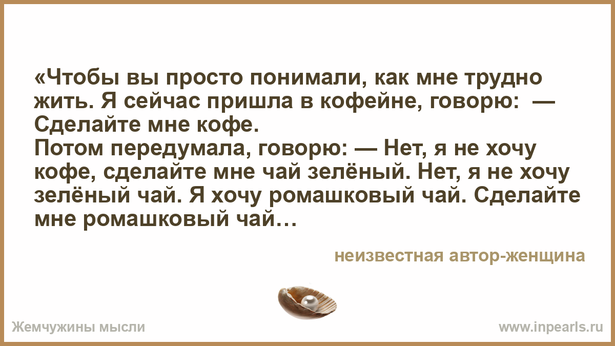 «Чтобы вы просто понимали, как мне трудно жить. Я сейчас пришла в кофейне, говорю: — Сделайте мне кофе.