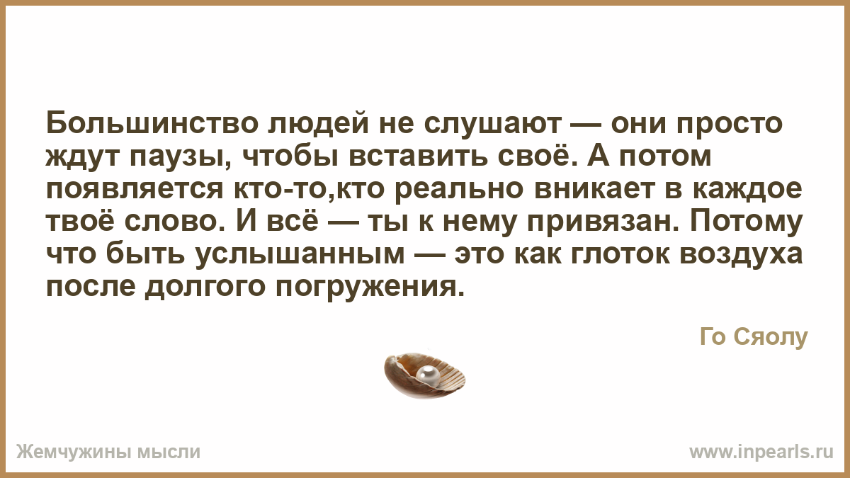 Большинство людей не слушают — они просто ждут паузы, чтобы вставить своё. А потом появляется кто-то,кто реально вникает в каждое твоё слово. И всё — ты к нему привязан. Потому что быть услышанным — это как глоток воздуха после долгого погружения.