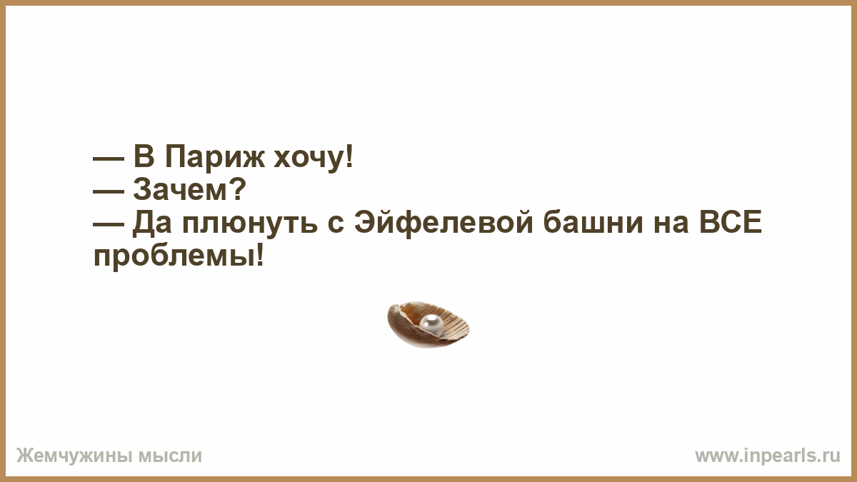 — Да плюнуть с Эйфелевой башни на ВСЕ проблемы!