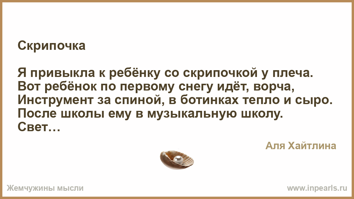 Я привыкла к ребёнку со скрипочкой у щеки.