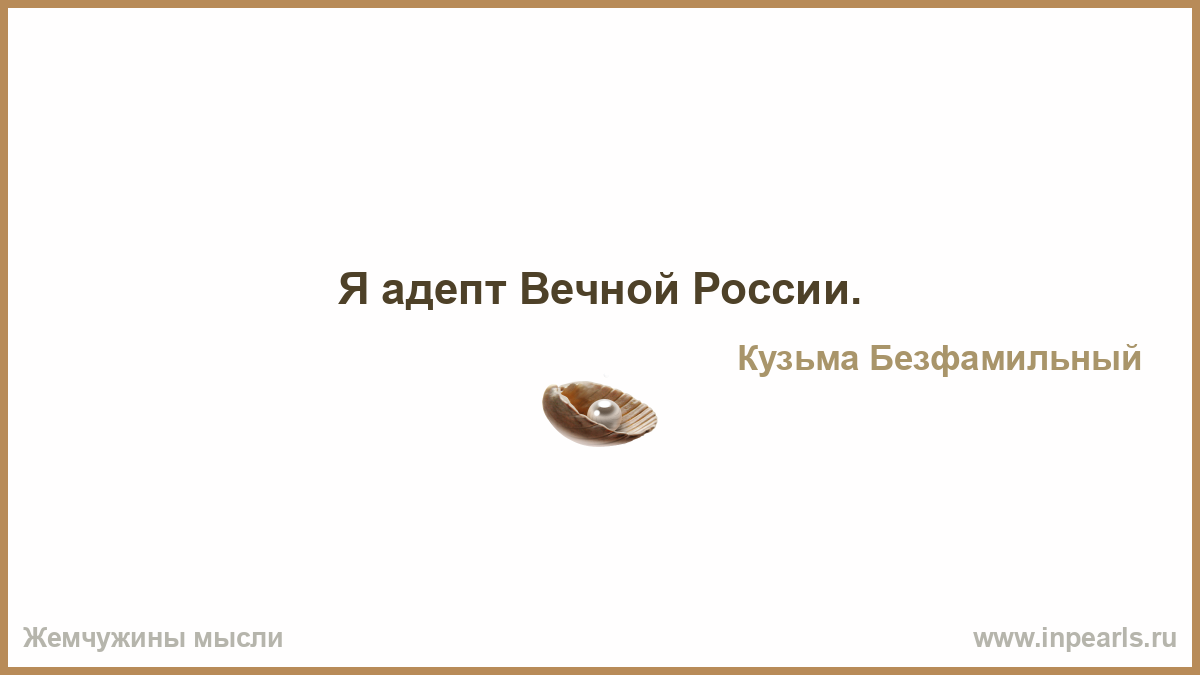 Россия на данный момент имеет все: союз братских коренных народов, свою испокон веков территорию, ресурсы и богатства, сильную власть, суперсовременное оружие и воинов готовых не щадя живота защитить все это. Но до людей, до основной массы пока что это не дошло, нужно время.