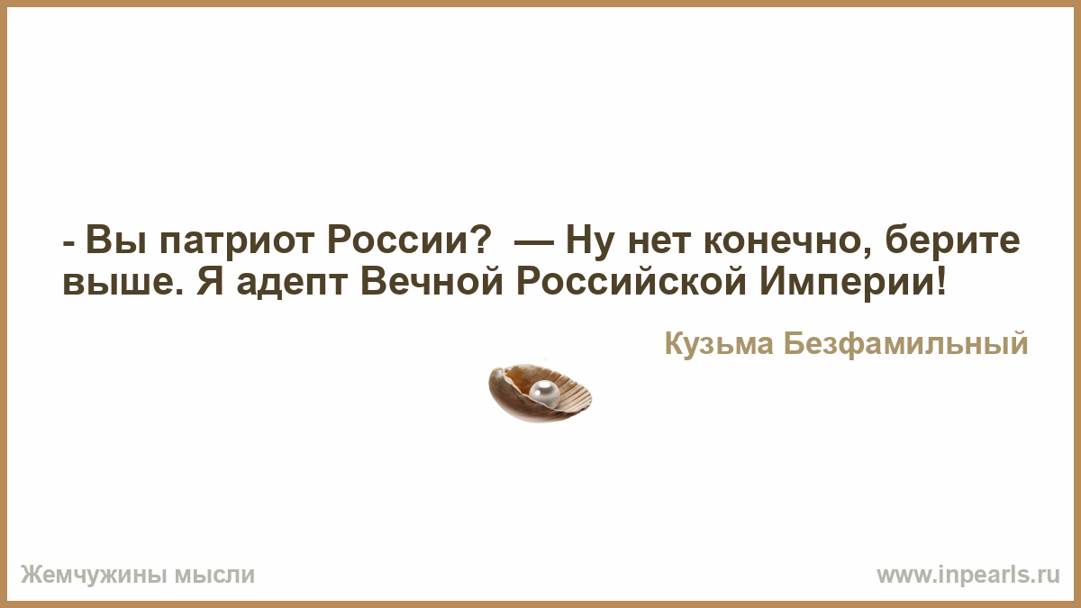 Россия на данный момент имеет все: союз братских коренных народов, свою испокон веков территорию, ресурсы и богатства, сильную власть, суперсовременное оружие и воинов готовых не щадя живота защитить все это. Но до людей, до основной массы пока что это не дошло, нужно время.