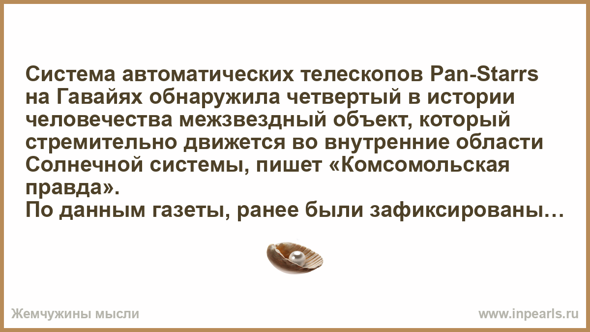 Система автоматических телескопов Pan-Starrs на Гавайях обнаружила четвертый в истории человечества межзвездный объект, который стремительно движется во внутренние области Солнечной системы, пишет «Комсомольская правда».