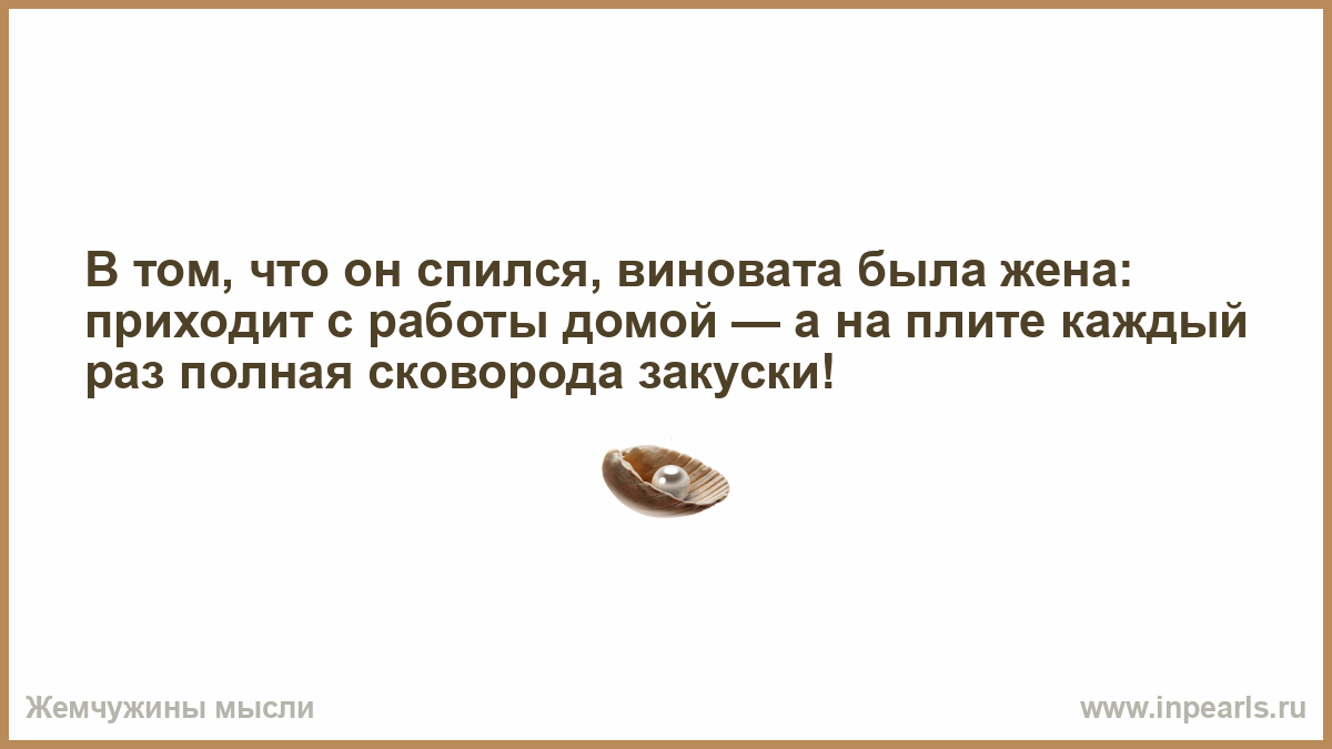 В том, что он спился, виновата была жена: приходит с работы домой — а на плите каждый раз полная сковорода закуски!