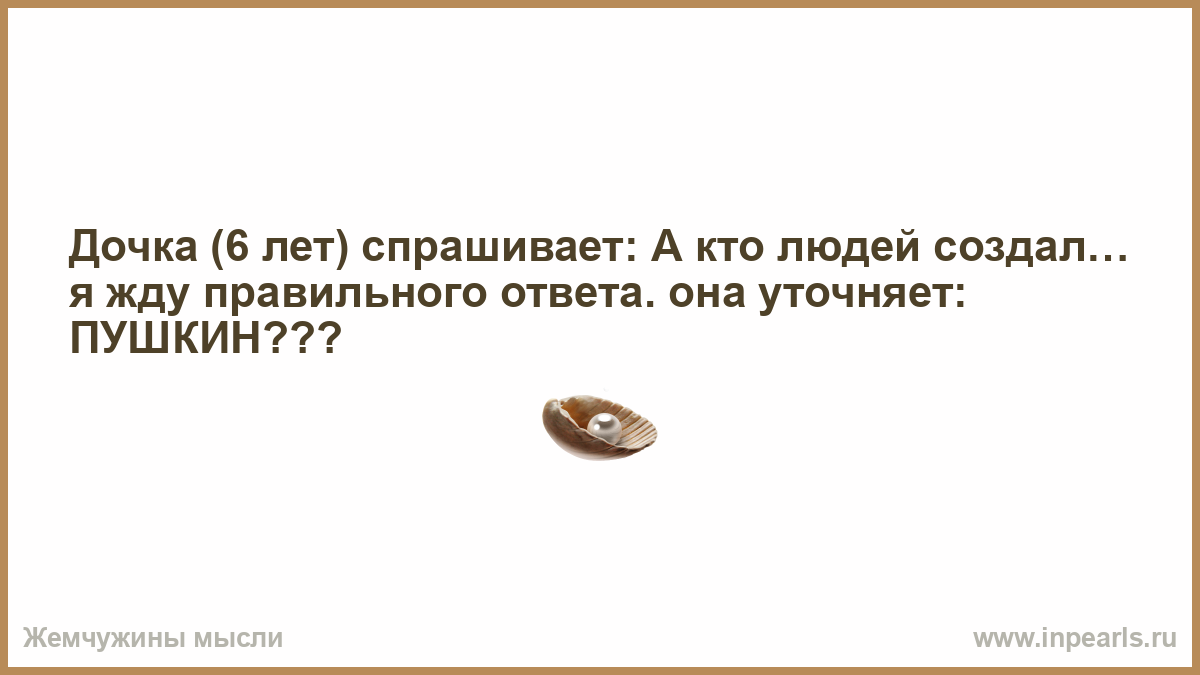 Дочка (6 лет) спрашивает: А кто людей создал… я жду правильного ответа. она уточняет: ПУШКИН???