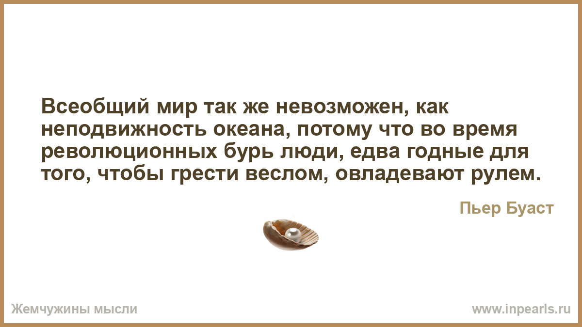 Всеобщий мир так же невозможен, как неподвижность океана, потому что во время революционных бурь люди, едва годные для того, чтобы грести веслом, овладевают рулем.