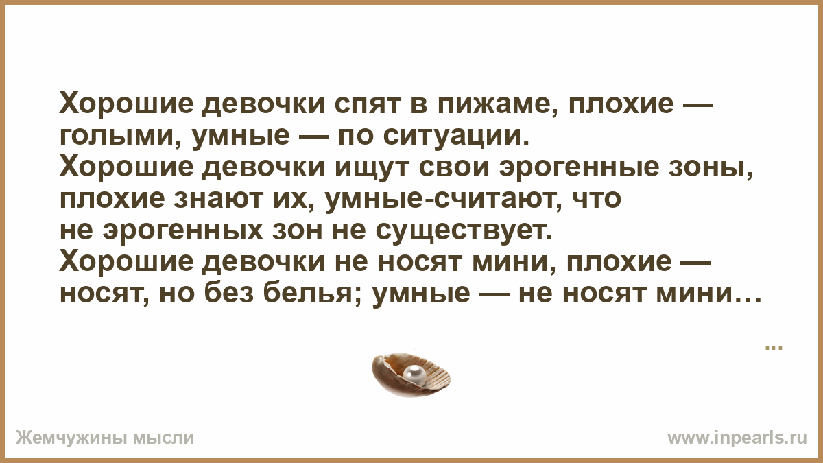 Хорошие девочки спят в пижаме, плохие — голыми, умные — по ситуации.