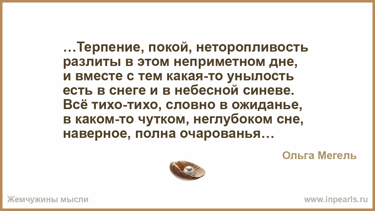 …Терпение, покой, неторопливость
