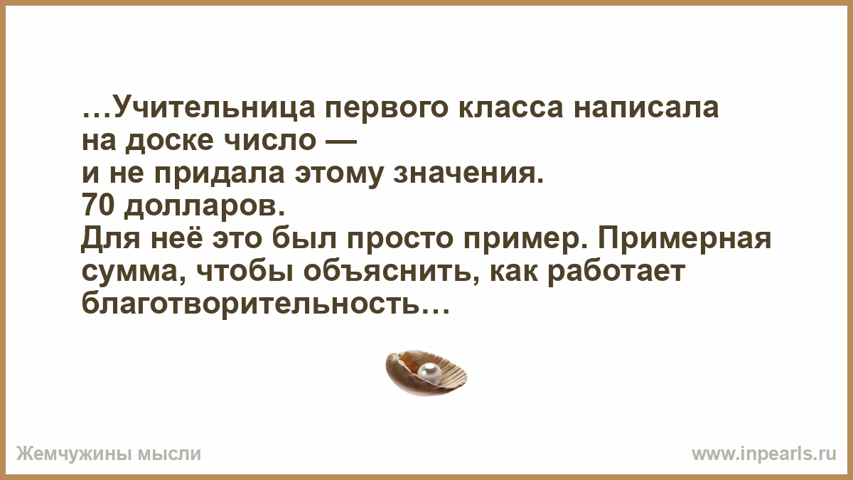 Для неё это был просто пример. Примерная сумма, чтобы объяснить, как работает благотворительность.