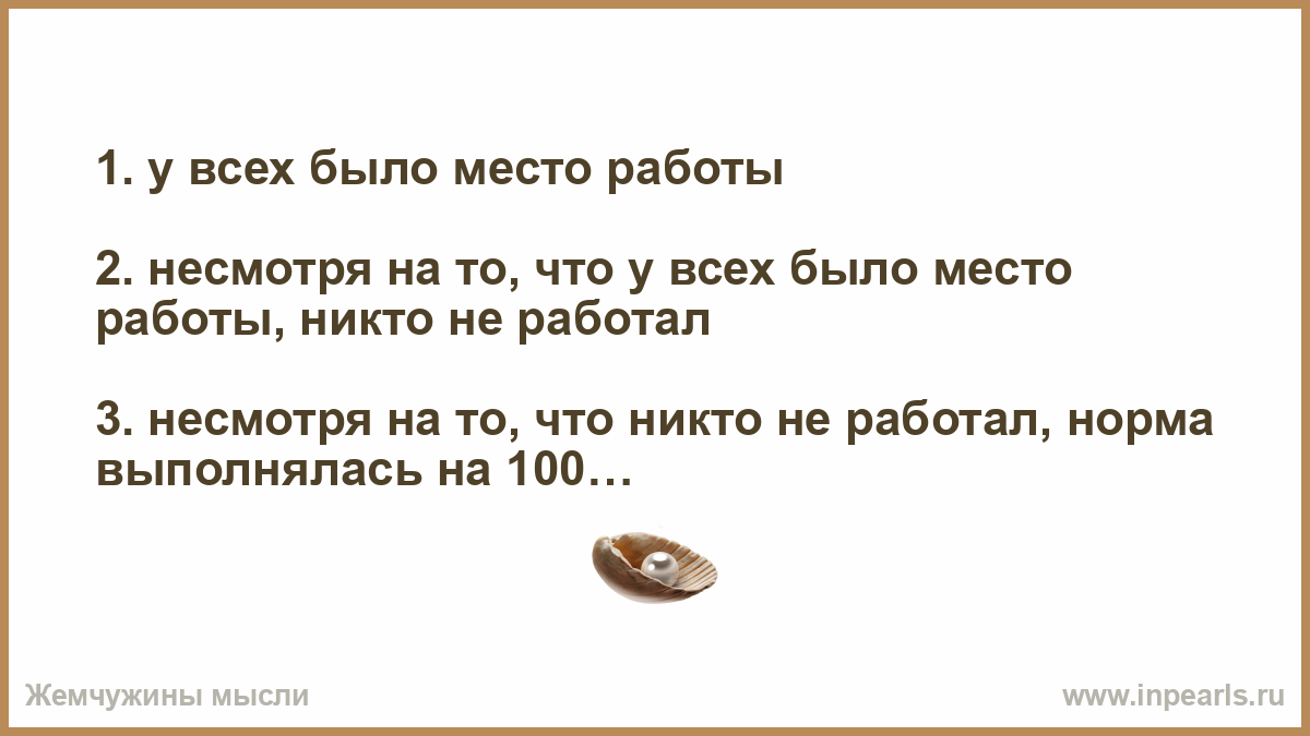 3. несмотря на то, что никто не работал, норма выполнялась на 100%