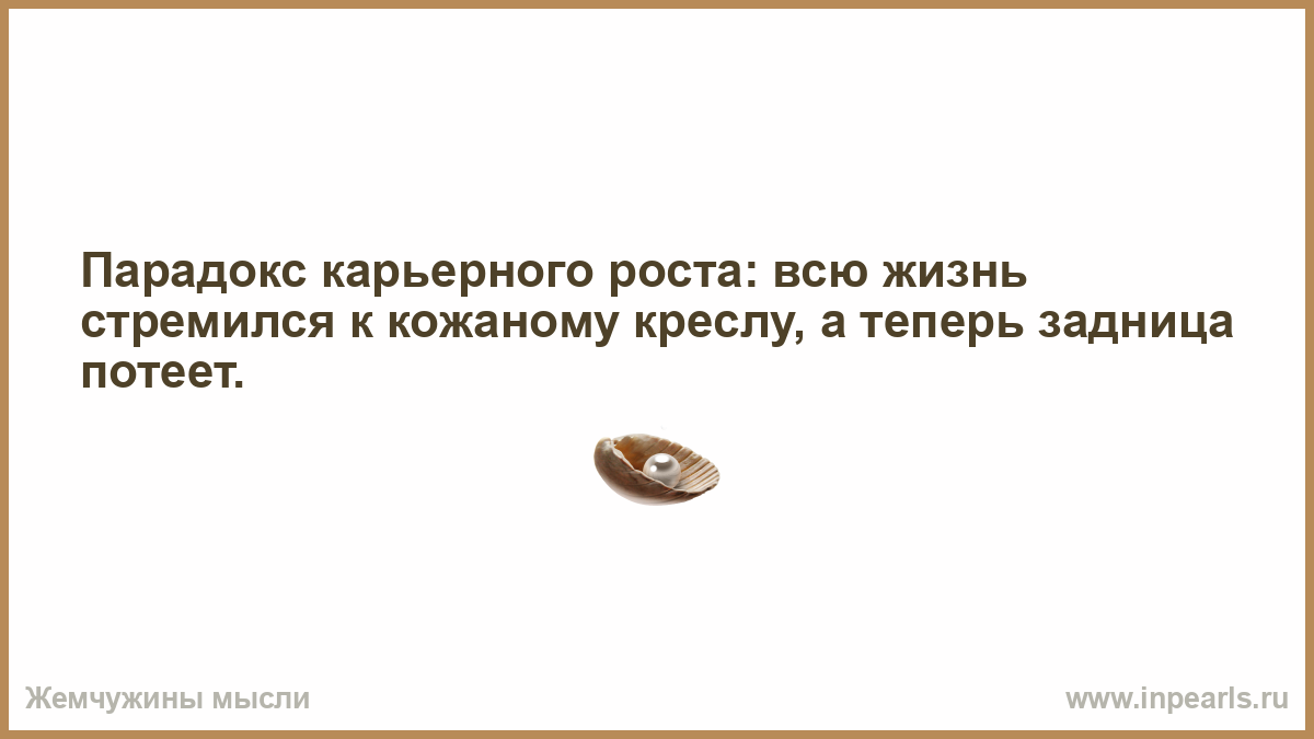 Парадокс карьерного роста: всю жизнь стремился к кожаному креслу, а теперь задница потеет.