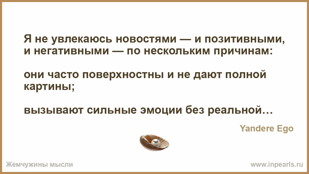 Я не увлекаюсь новостями — и позитивными, и негативными — по нескольким причинам: