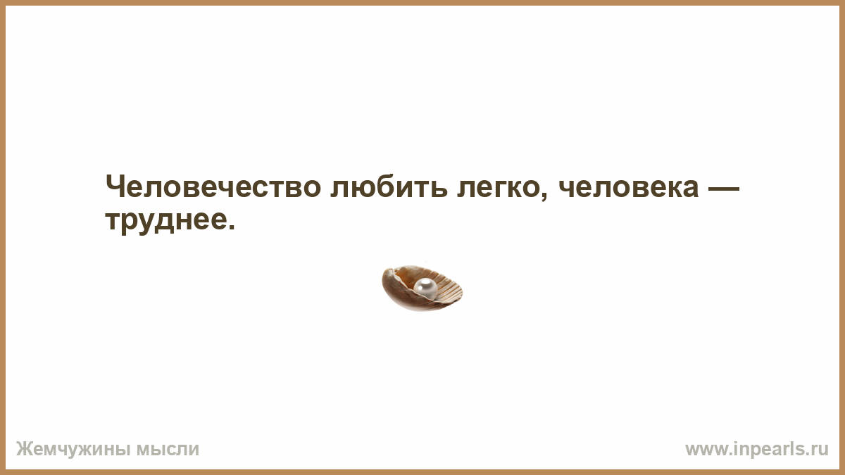Чтобы любить людей, нужно: во-первых, видеть в них людей; во-вторых, видеть в них хороших людей; и, в-третьих, видеть в них всё человечество!
