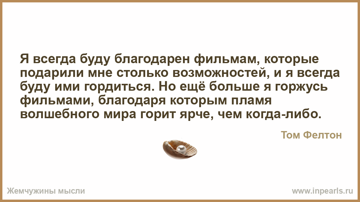 Я всегда буду благодарен фильмам, которые подарили мне столько возможностей, и я всегда буду ими гордиться. Но ещё больше я горжусь фильмами, благодаря которым пламя волшебного мира горит ярче, чем когда-либо.