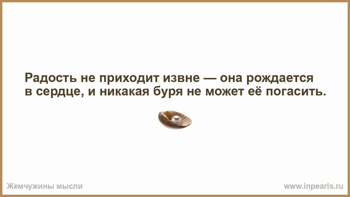 Радость не приходит извне — она рождается в сердце, и никакая буря не может её погасить.