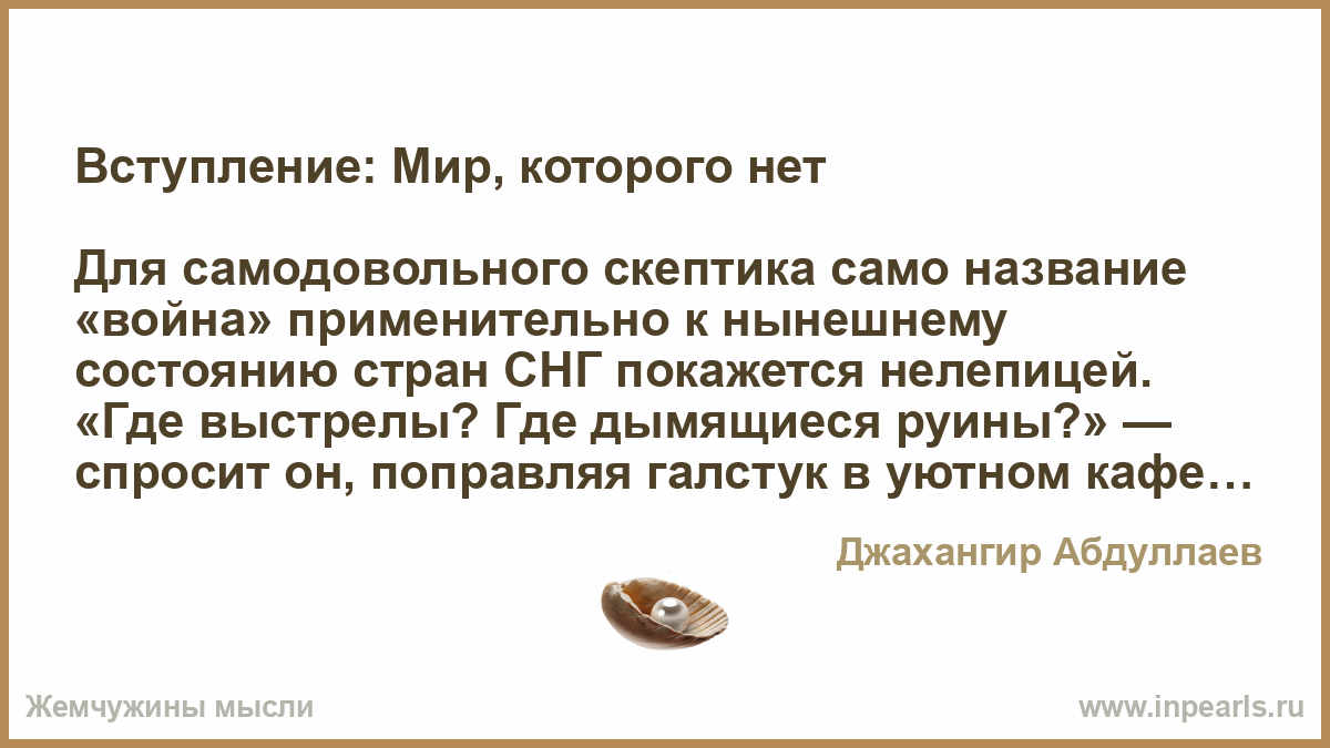 Для самодовольного скептика само название «война» применительно к нынешнему состоянию стран СНГ покажется нелепицей. «Где выстрелы? Где дымящиеся руины?» — спросит он, поправляя галстук в уютном кафе. Но война в 21 веке изменила свой лик. Она больше не нуждается в громе канонады, чтобы убивать; ей достаточно тишины коррупционных кабинетов и шуршания бумаг о «разгосударствлении».
