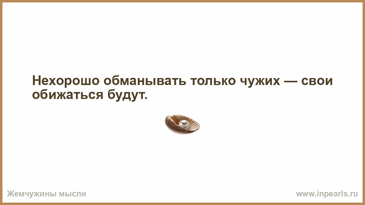 Нехорошо обманывать только чужих — свои обижаться будут.
