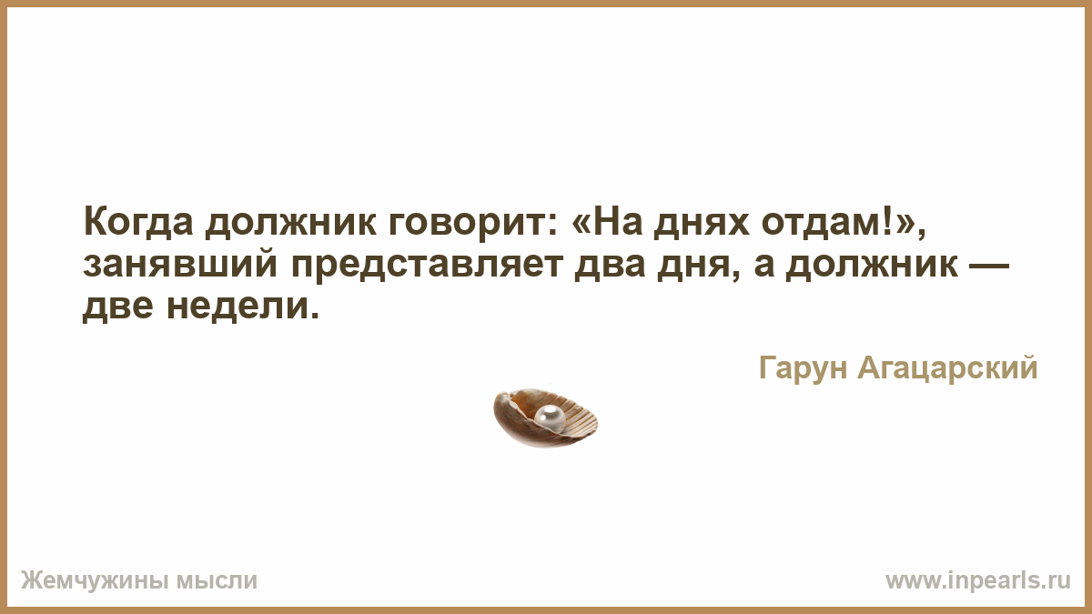 Когда должник говорит одолжившему: «На днях отдам!», одолживший представляет два дня, а должник — две недели.