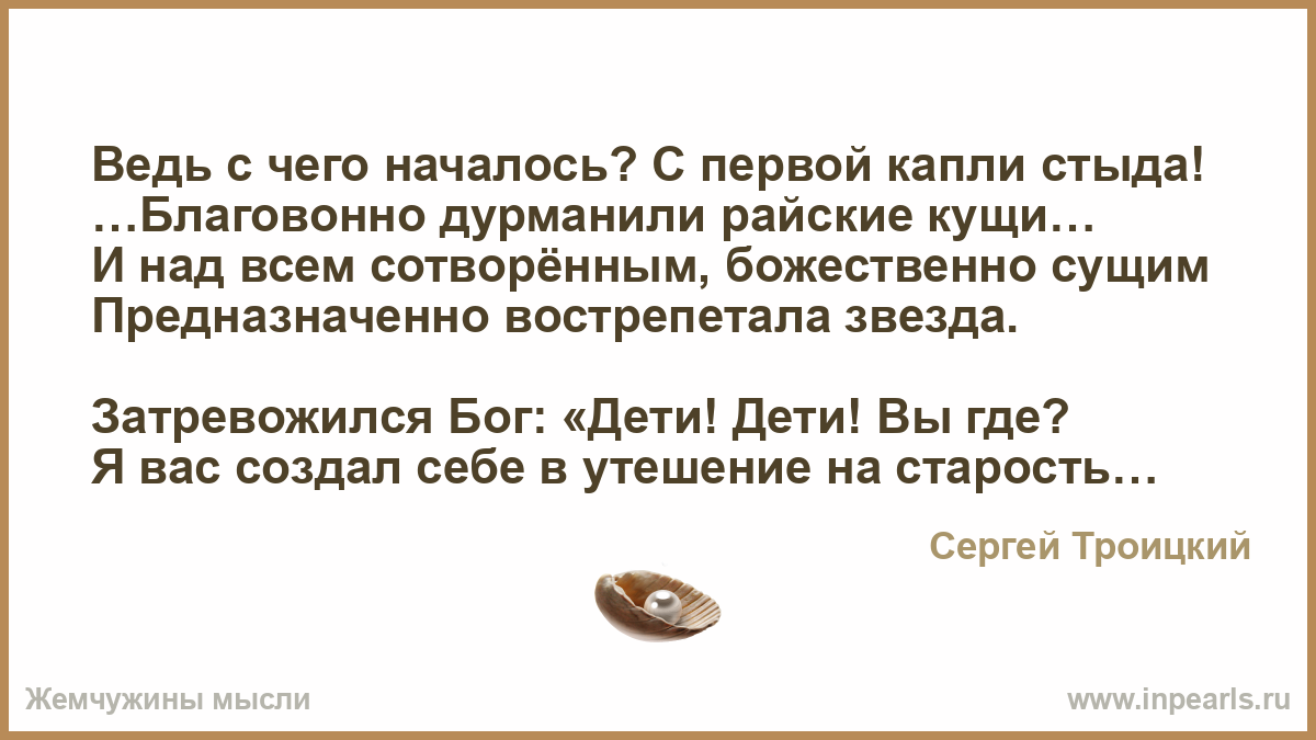 Ведь с чего началось? С первой капли стыда!