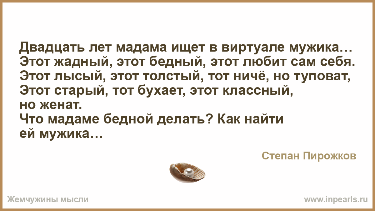 Двадцать лет мадама ищет в виртуале мужика…