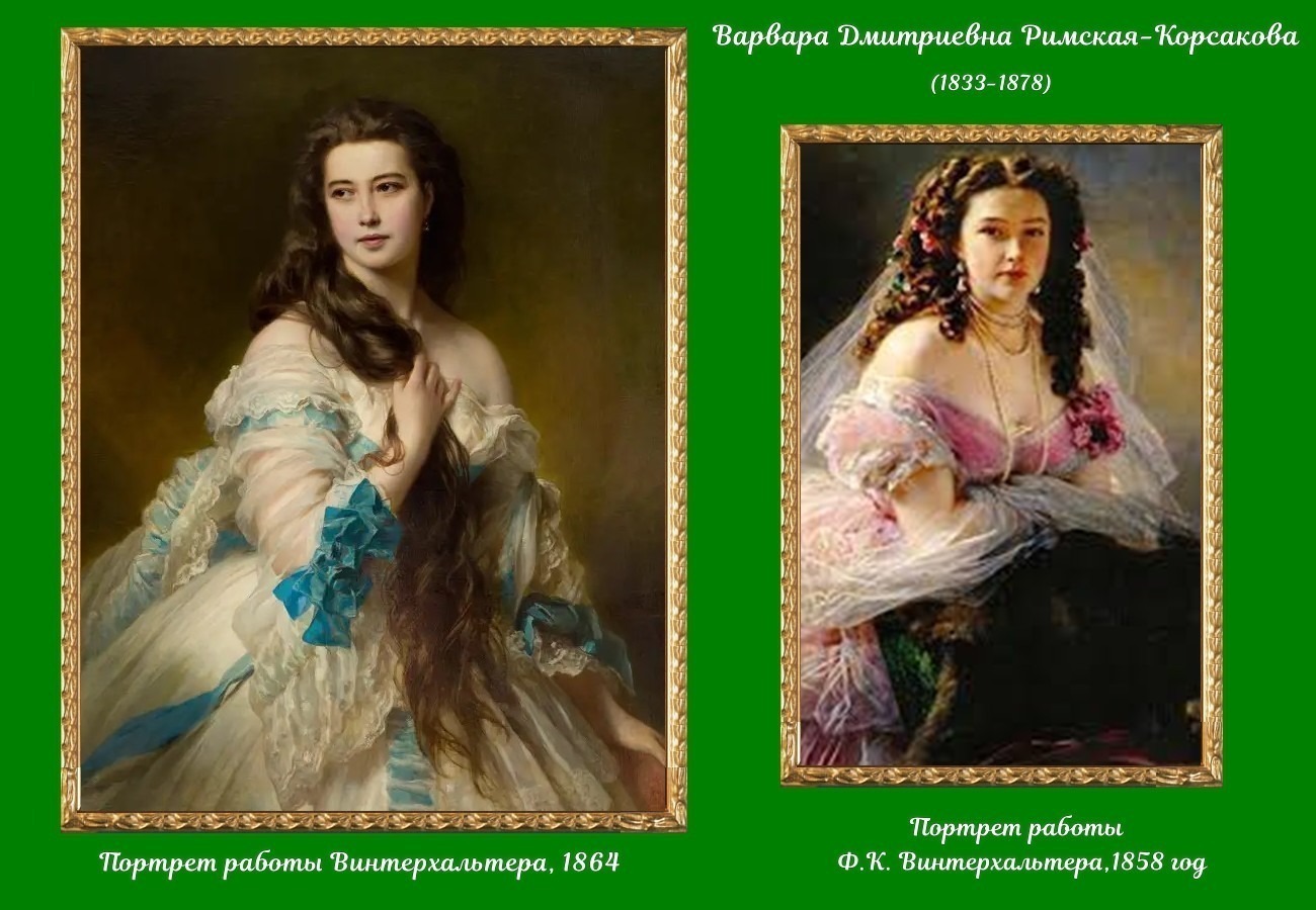 На коллаже представлены портреты Варвары Дмитриевны Римской-Корсаковой, написанные Францем Ксавьером Винтерхальтером.