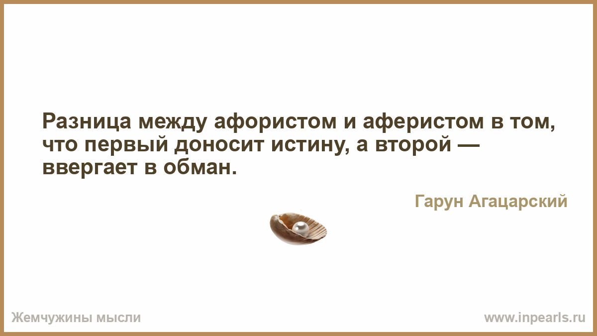 Разница между афористом и аферистом в том, что первый доносит истину, а второй — ввергает в обман.