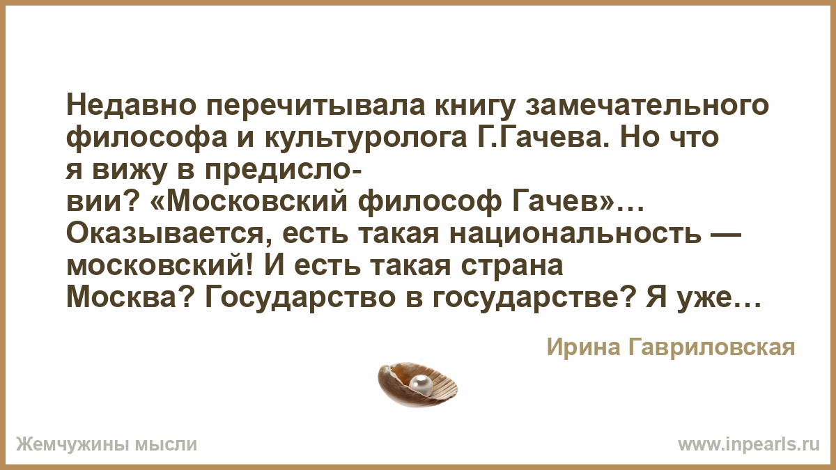 вии? «Московский философ Гачев»… Оказывается, есть такая национальность — московский! И есть такая страна