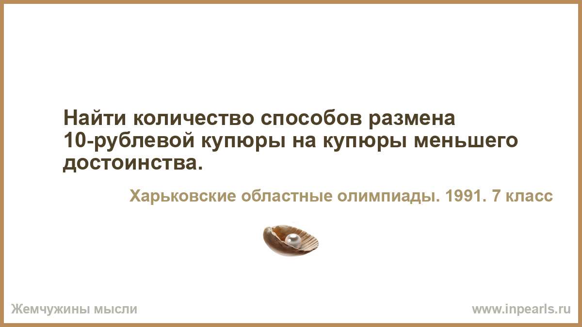 Найти количество способов размена 10-рублевой купюры на купюры меньшего достоинства.