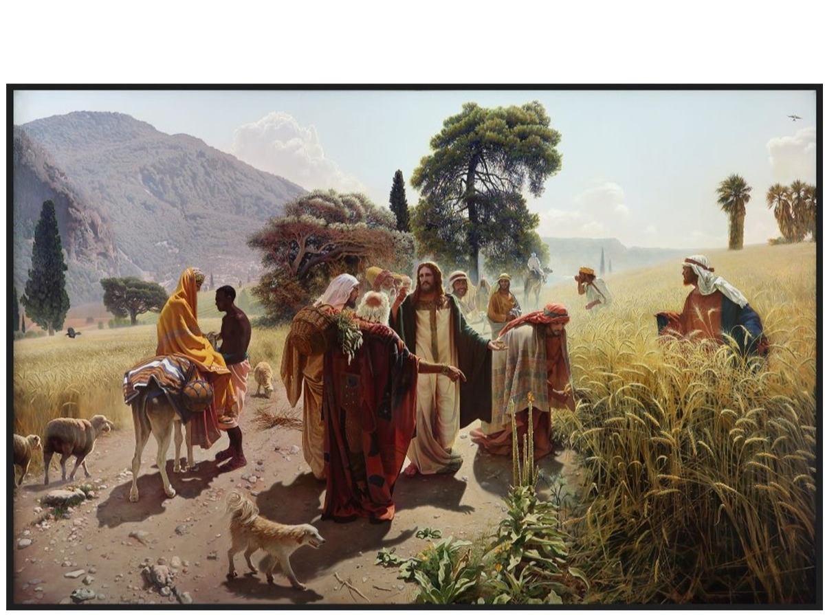Сюжет картины основан на библейском эпизоде из Евангелия от Марка (Мк 2:27), где Иисус Христос вместе с учениками проходит через засеянные поля в субботу.