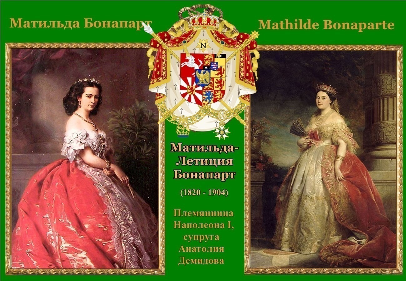 Холодной зимой 1841 года в Россию приехала Матильда-Летиция Вильгельмина Бонапарт — единственная дочь младшего брата Наполеона Бонапарта. Прибыла она, можно сказать, с родственным визитом: племянница Наполеона одновременно являлась и двоюродной племянницей императора Николая Павловича.