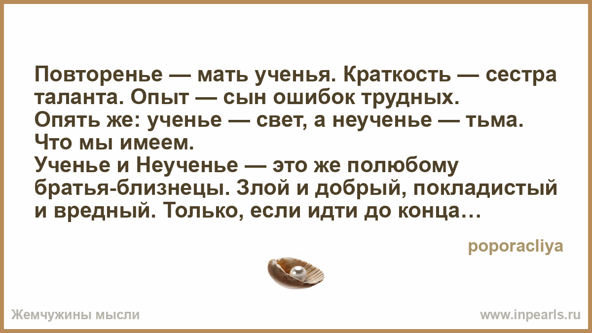 Повторенье — мать ученья. Краткость — сестра таланта. Опыт — сын ошибок трудных.