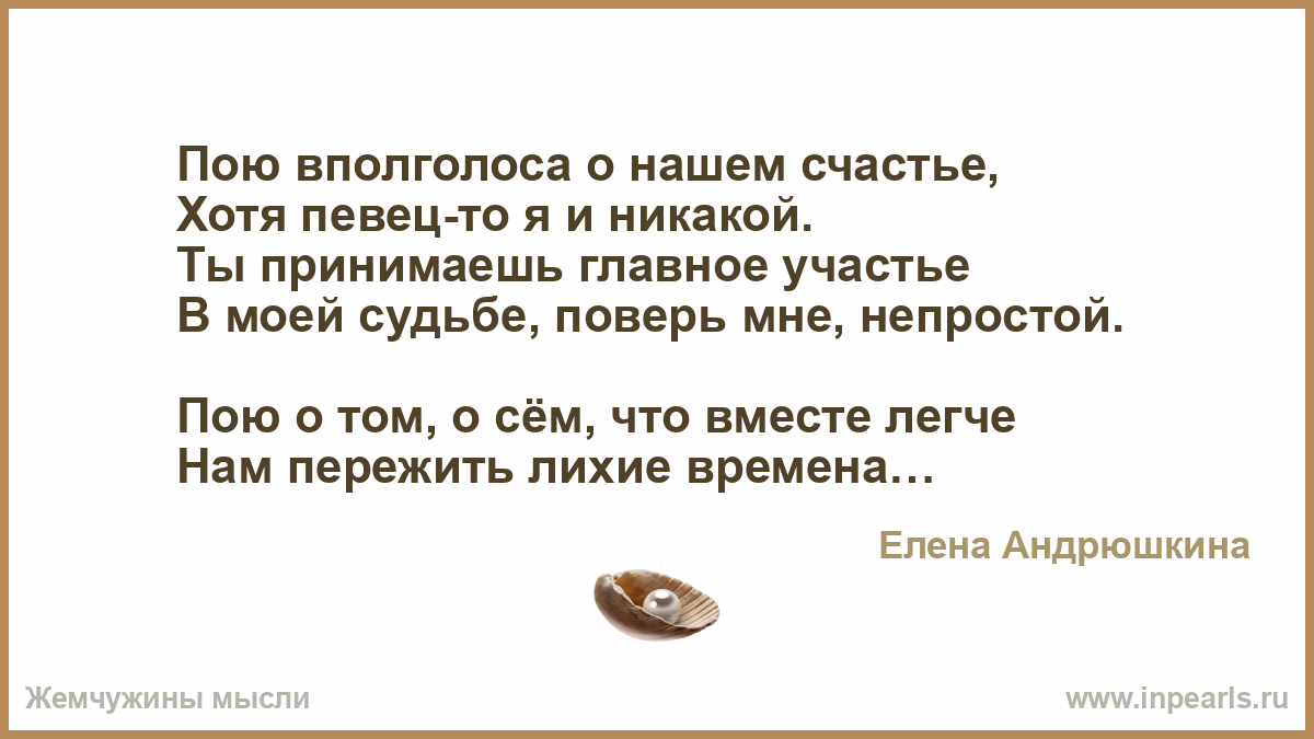 Как же мало… для счастья нам надо… Лишь бы только… в душе был уют… И беспечность… как в детстве когда-то… И уверенность в том… что нас ждут… И не важно совсем… кто…и где… Если ждут… значит ты… еще нужен… Пусть у каждого будет… в судьбе… Тот причал… что спасет и укроет… от стужи.