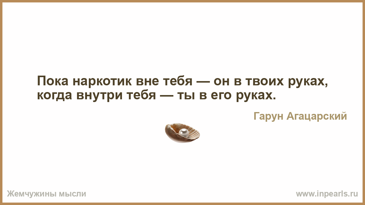 Пока наркотик вне тебя — он в твоих руках, когда внутри тебя — ты в его руках.