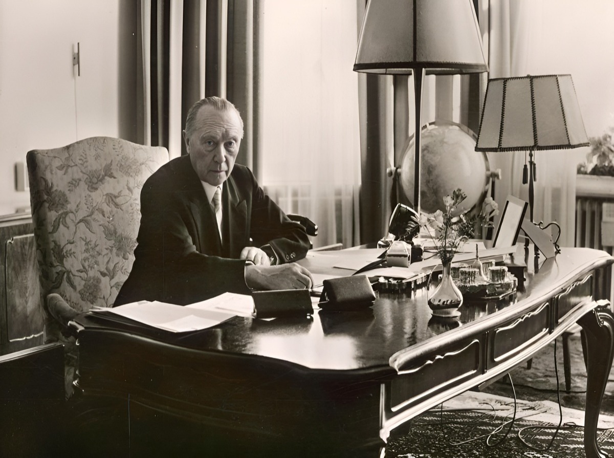 В 1949-м он избирается федеральным канцлером и остаётся им до своего ухода в отставку в 1963-м.