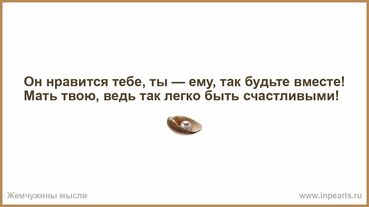 Он нравится тебе, ты — ему, так будьте вместе! Мать твою, ведь так легко быть счастливыми!