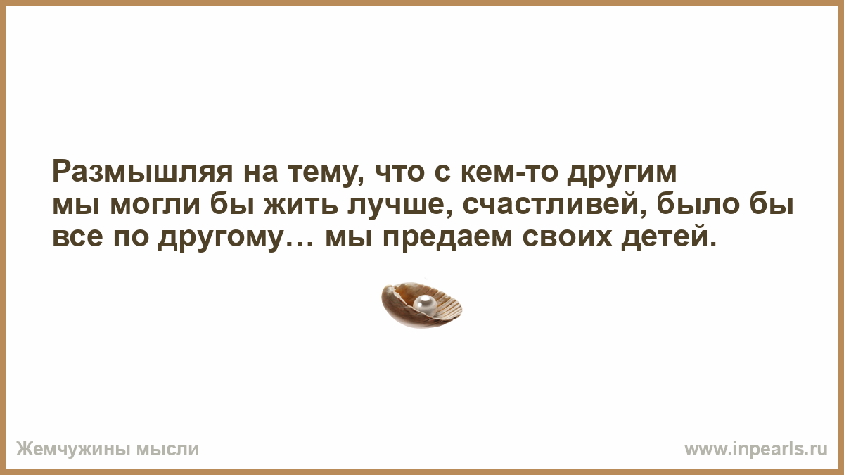 Размышляя на тему, что с кем-то другим мы могли бы жить лучше, счастливей, было бы все по другому… мы предаем своих детей.