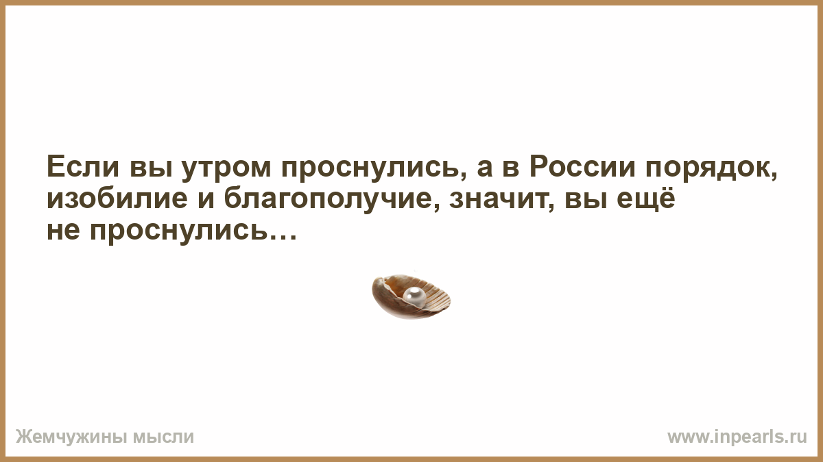 Если вы утром проснулись, а в России порядок, изобилие и благополучие, значит, вы ещё не проснулись…