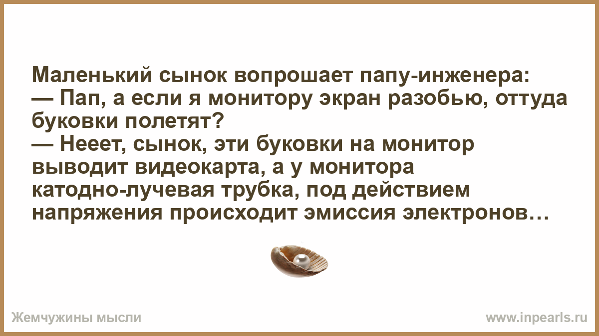 — Пап, а если я монитору экран разобью, оттуда буковки полетят?
