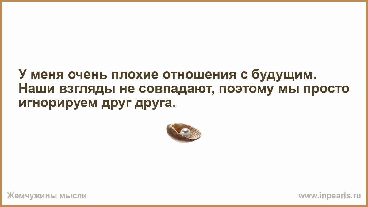 У меня очень плохие отношения с будущим. Наши взгляды не совпадают, поэтому мы просто игнорируем друг друга.