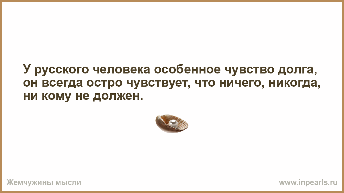 У русского человека особенное чувство долга, он всегда остро чувствует, что ничего, никогда, ни кому не должен.