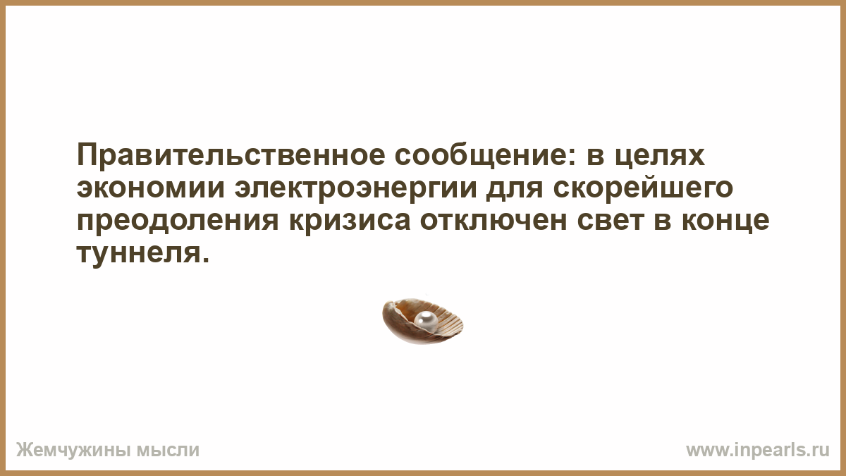 Правительственное сообщение: в целях экономии электроэнергии для скорейшего преодоления кризиса отключен свет в конце туннеля.