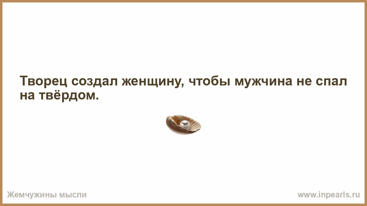 Творец создал женщину, чтобы мужчина не спал на твёрдом.