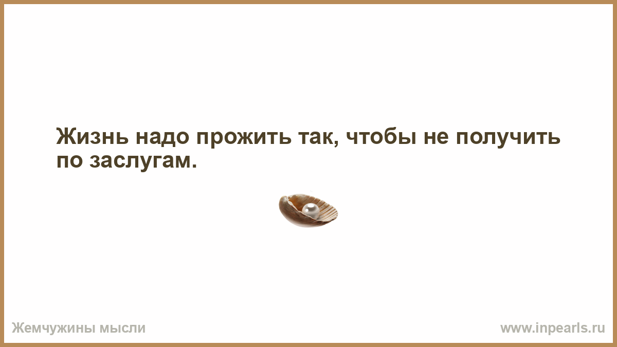 Жизнь надо прожить так, чтобы не получить по заслугам.